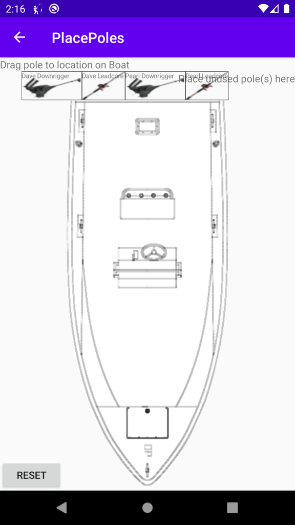 Once your poles have been place on the boat, your Home Screen show where the poles are placed.