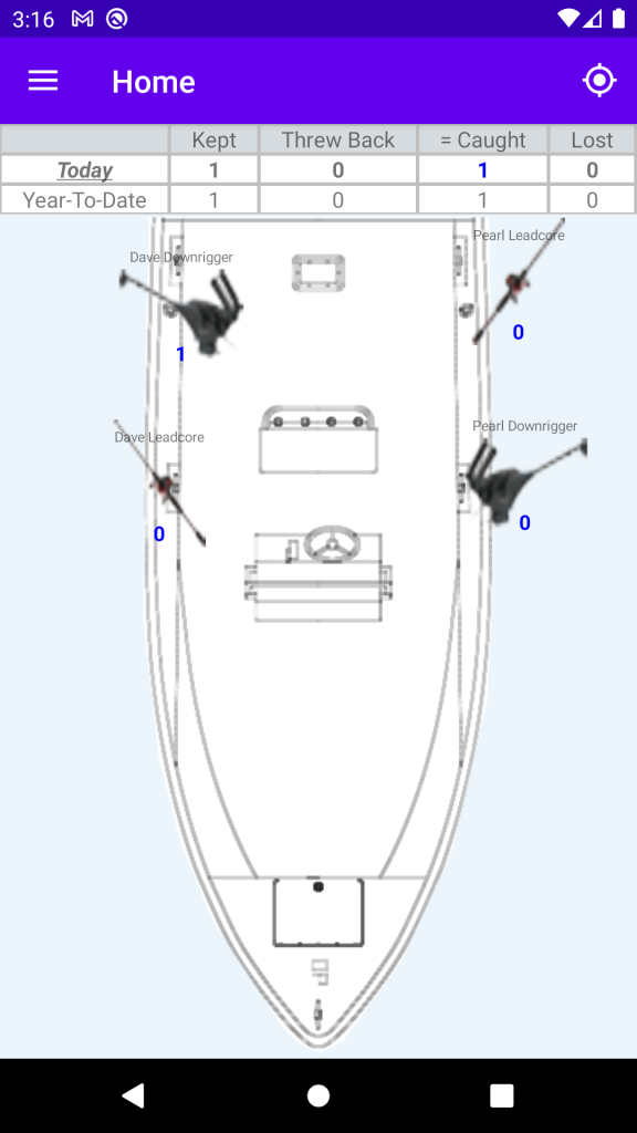 The top shows the results for today and Year to Date totals. The kept, shows how many fish are in your boat.